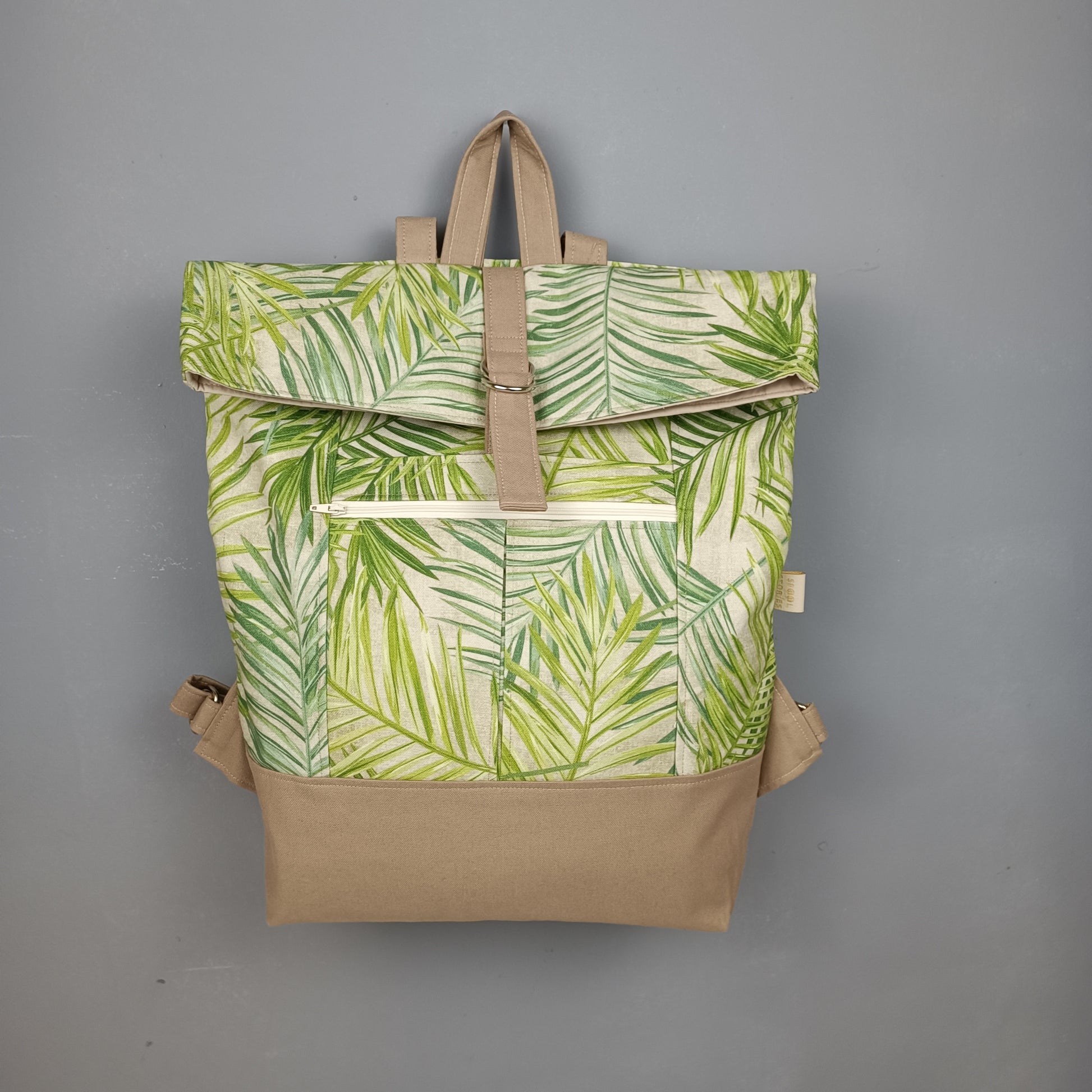 Άνετη, μεγάλη τσάντα πλάτης από βαμβακερό καμβά με τσέπη φερμουάρ μπροστά.